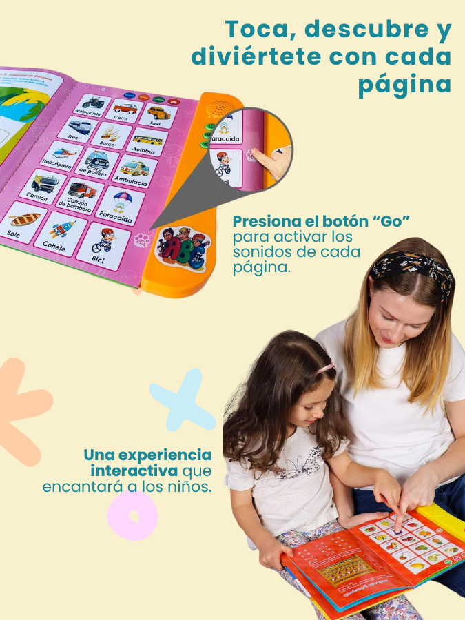 Sí. Cada imagen es interactiva. Al presionarla, el libro emite el sonido correspondiente en español, ayudando a mejorar la pronunciación.