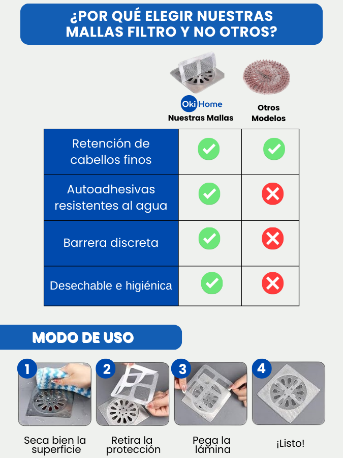 ✅ Evita atascos en el desagüe✅ Captura cabellos, restos de jabón y suciedad